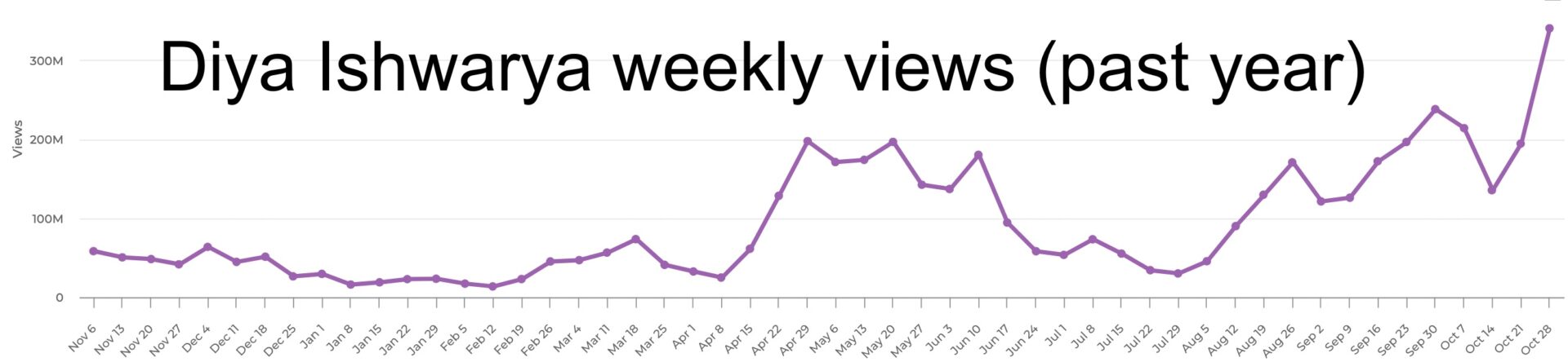 Since April, Diya Ishwarya has been on an upward trajectory on YouTube. She just reached 20th place in the Global Top 50 after collecting 329.4 million weekly views.