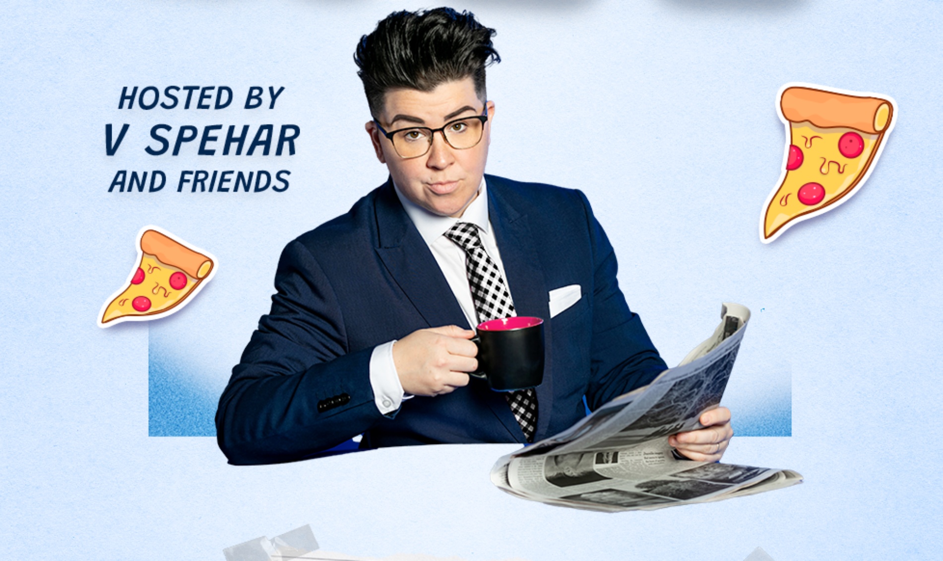 If the anxiety induced by tonight’s election results makes you want to hide under the desk for safety, then V Spehar has a show for you. Spehar, the creator and pundit who hosts Under the Desk News, is going live across multiple platforms with a November 5 special called Election Night Pizza Party.