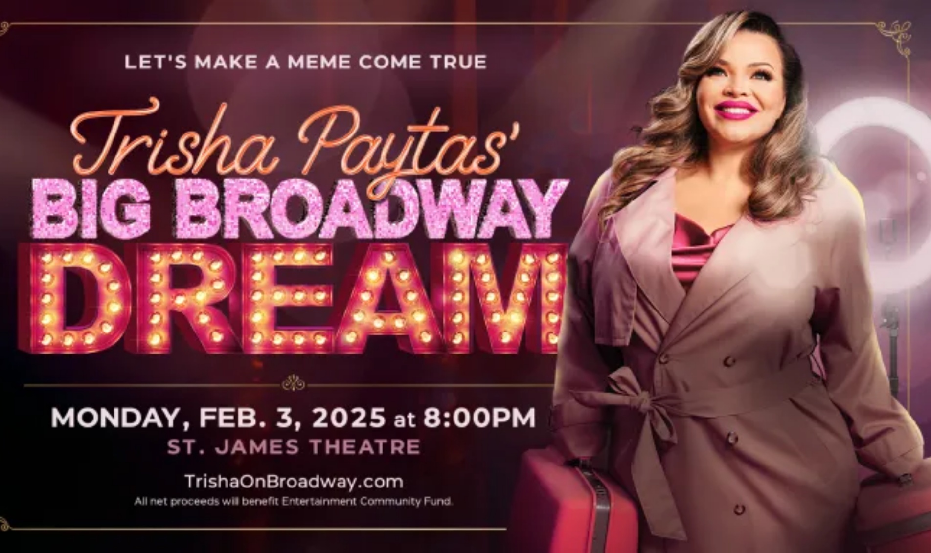 After her trip to late-night TV, Paytas is headed to the Great White Way. Her show at the St. James, titled Trisha Paytas’ Big Broadway Dream, will support the Entertainment Community Fund when it goes live on February 3, 2025. According to Deadline, the “musical theater extravaganza” will also be streamed via StagePilot.