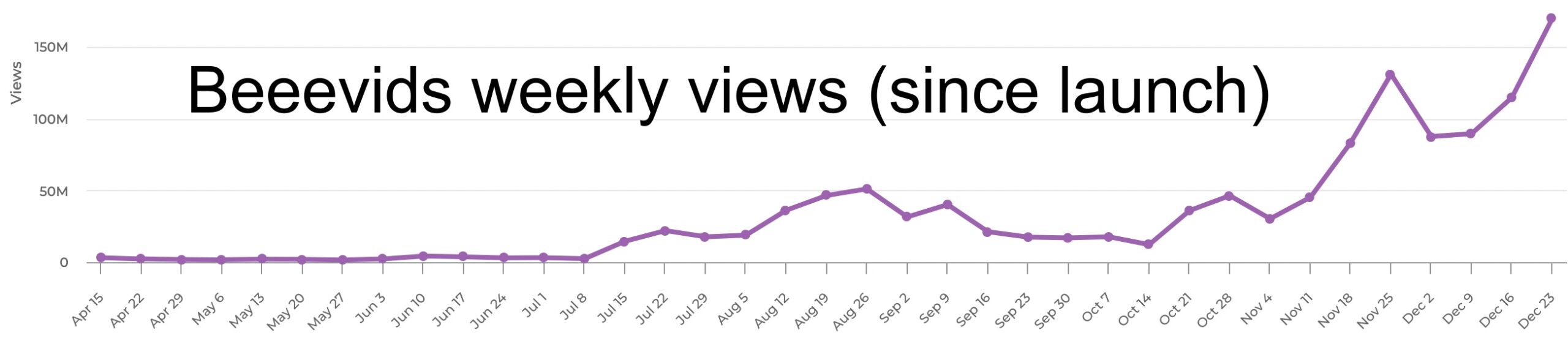Luckily for us old-school gamers, the Minecraft community on YouTube Shorts still offers some semblance of order. Beeevids had a breakout year in 2024 with content that offers the best of both worlds. The 67th-ranked channel in the U.S. Top 100 added 690,000 new subscribers in December 2024 by uploading recognizable Minecraft gameplay full of references to the latest memes.