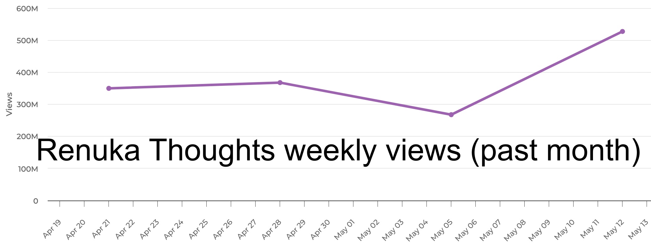 Is Renuka Thoughts the Alan Chikin Chow of India? The channel’s recent traffic — totaling 527.2 million weekly views — suggests that it’s in the same stratosphere as YouTube’s biggest draws.