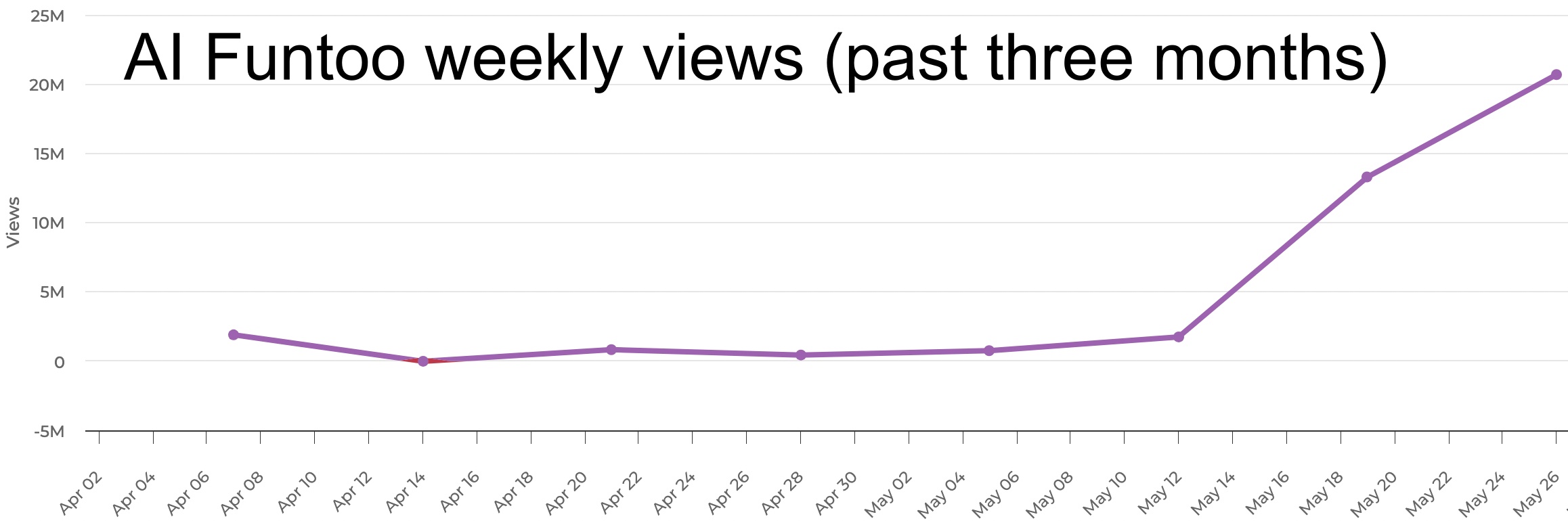 AI Funtoo, for example, is a typical generative AI hub that utilizes pop culture characters like Spiderman and Pikachu. These days, AI Funtoo has added in its own India and Pakistan avatars, and the viewers are rushing in. AI Funtoo reached 35th place in the Global Sub Top 50 by adding 413,000 new subscribers over a seven-day period.