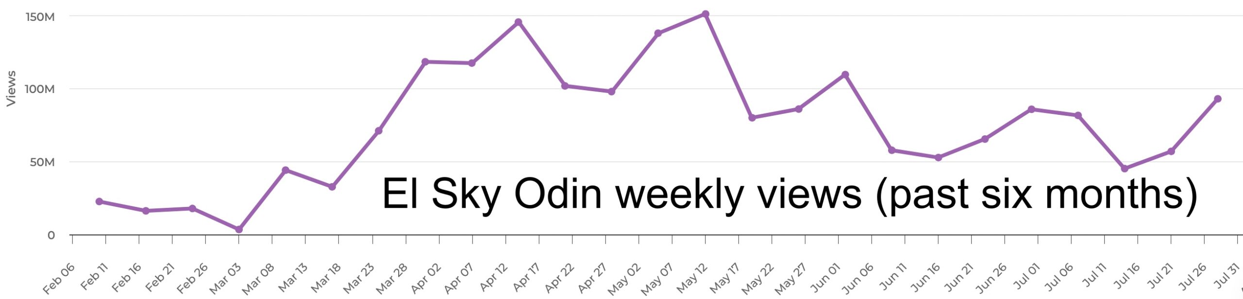Other Mexican creators are taking different approaches. El Sky Odin is adding his name to the list of popular content aggregators on YouTube Shorts, and he’s climbing to the top of that busy category. He just added 500,000 new subs in a week, outpacing his previous weekly sum by 85%. He still hasn’t reached the viewership highs he achieved during the spring, but he’s getting there.