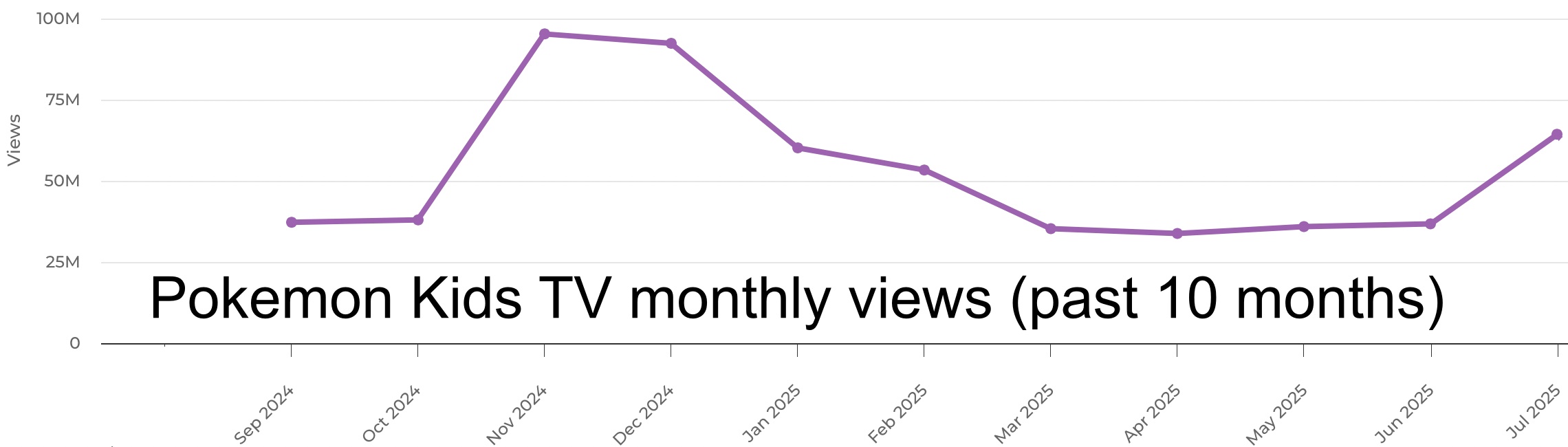 The official YouTube home of the pocket monsters is benefiting from the renewed surge of interest in the trading card game. Pokemon Kids TV is an all-ages hub where viewers can follow the fauna from their favorite game as they embark on adventures with one another. That channel had a huge month in July; it got 1.6 million new subscribers to reach 25th place in the Global Top 100.