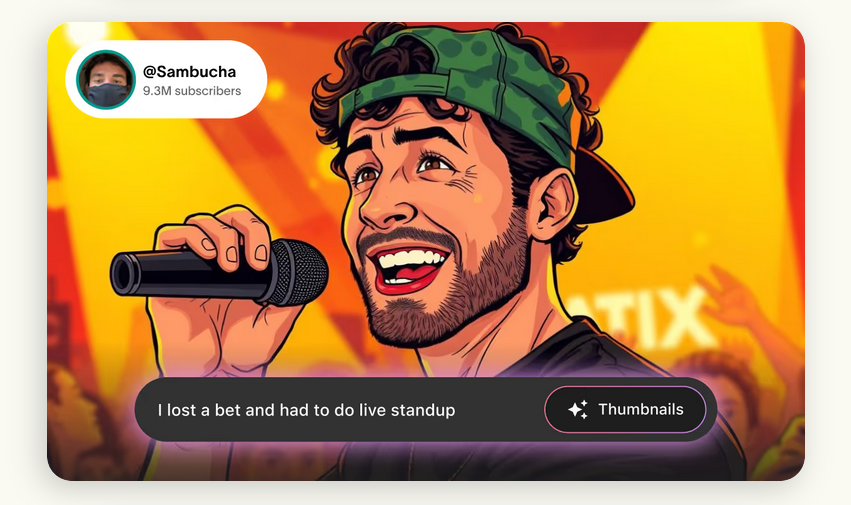 But Studio was its biggest AI play. Pitched as “a brainstorm partner, project planner, and research copilot,” Studio would digest a creator’s entire channel and use that data to do things like cold-suggest new video topics and draft thumbnails (like the one you see above). MrBeast, Dude Perfect, Kinigra Deon, Rebecca Zamolo, Jordan Matter, Jay Alto, Hayden Hillier-Smith, and Colin & Samir all participated in the tool’s beta period; it became available to creators at large in September 2024.