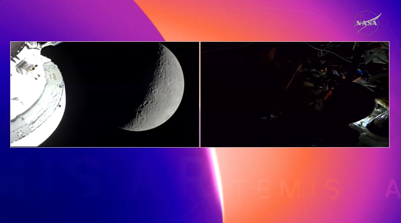 While the launch from Kennedy Space Center racked up major attention, things weren’t over. As the Orion sailed toward the moon, NASA continued broadcasting 24/7 on YouTube, offering two streams: one a silent video of live views from the Orion as it headed away from Earth; the other, an official “mission broadcast,” with the same views plus some shots from Control, with mission chatter audio.