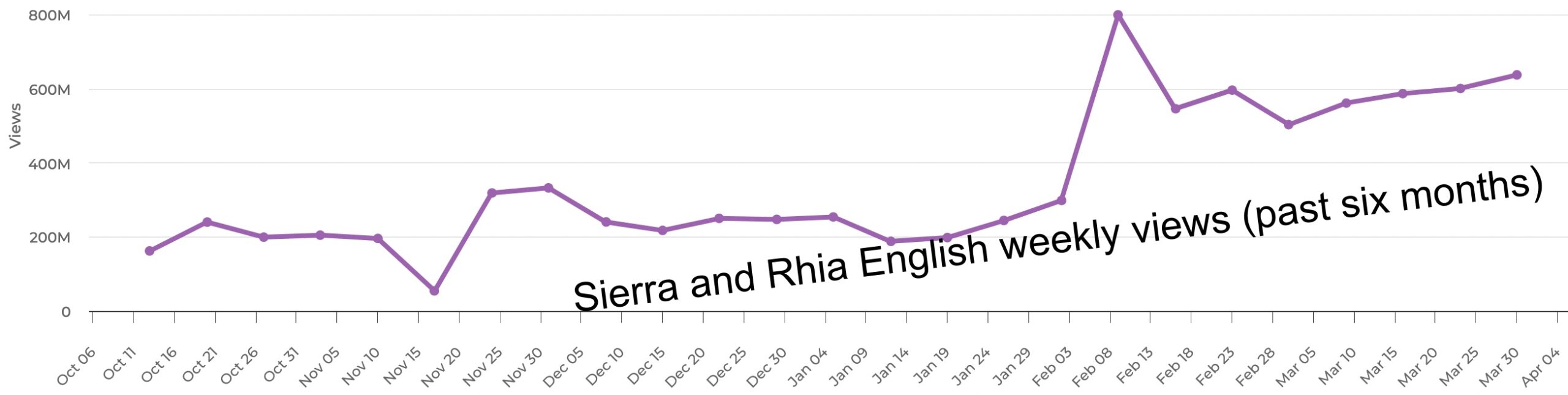 BabyBillion dominated our charts in March. It finished #1 in all of the Global Top 50 rankings we released during that month. As the calendar turns over April, BabyBillion isn’t slowing down. It got 1.14 billion weekly views to once again lead our ranking of the most-watched YouTube channels of the week.